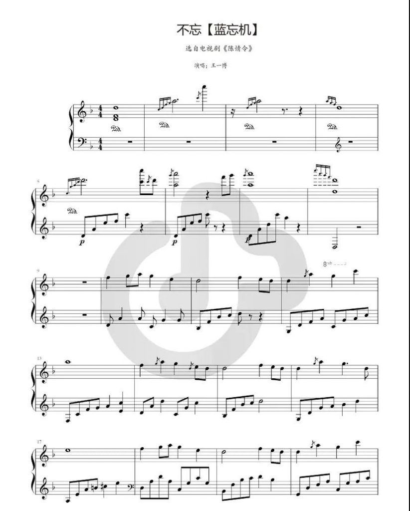 《陈情令》人物曲《不忘》钢琴演奏,附谱