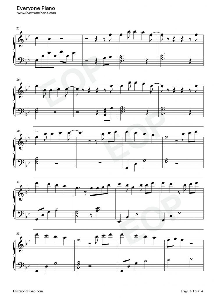 因为爱情 钢琴谱 – 电影《将爱情进行到底》主题曲-陈奕迅 、王菲