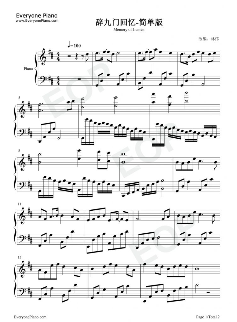 辞九门回忆 钢琴谱 戏子多秋可怜一处情深旧-抖音热歌