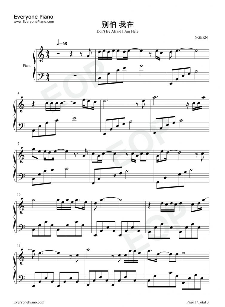 别怕我在 钢琴谱-别怕总有一个人给你爱-抖音热歌