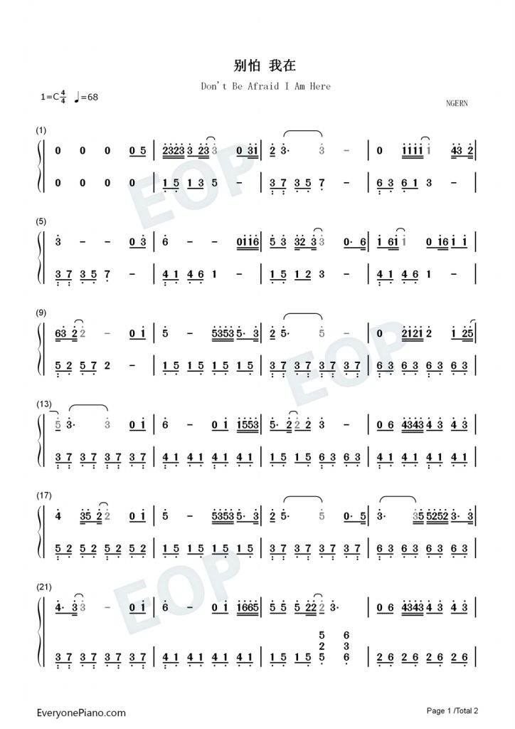 别怕我在 钢琴谱-别怕总有一个人给你爱-抖音热歌