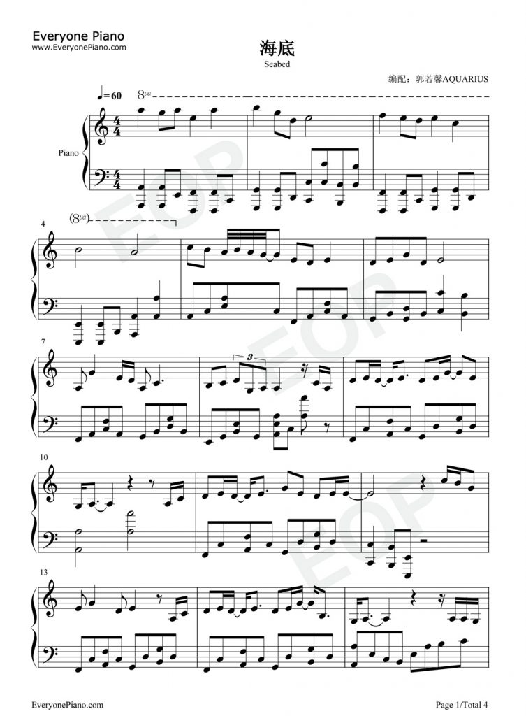 当前位置:首页 » 曲谱 » 流行曲谱 » 2020超火歌曲《海底》 钢琴谱