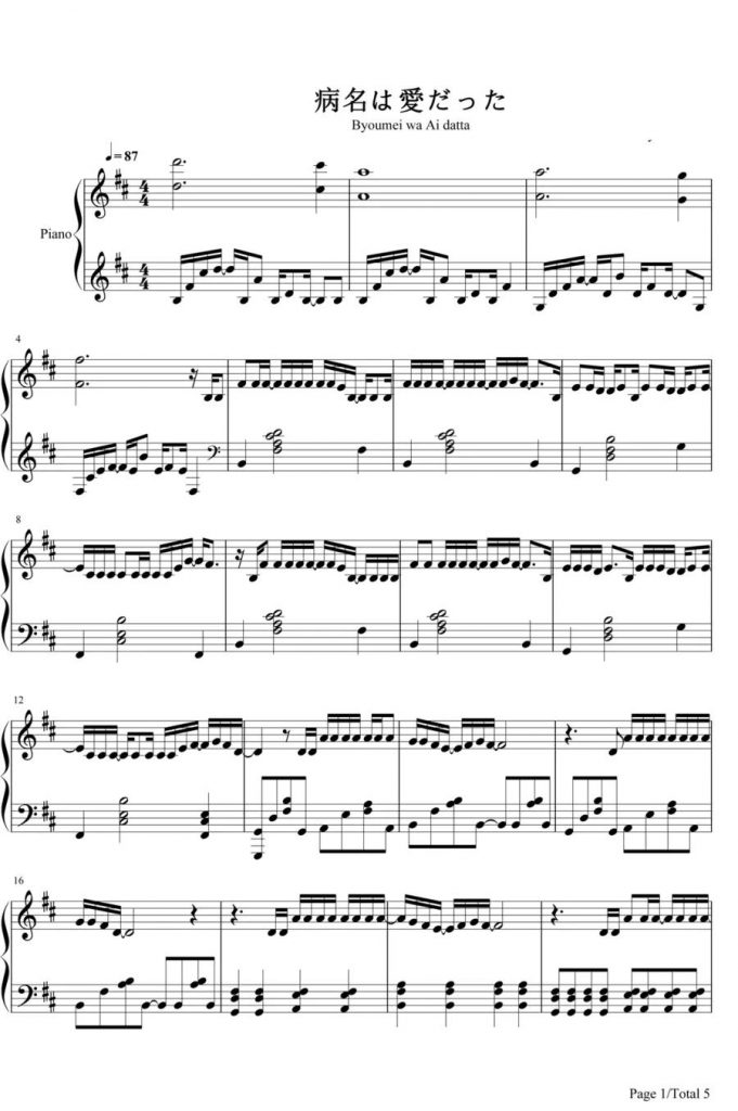 《病名は愛だった》(病名为爱)钢琴演奏,附谱