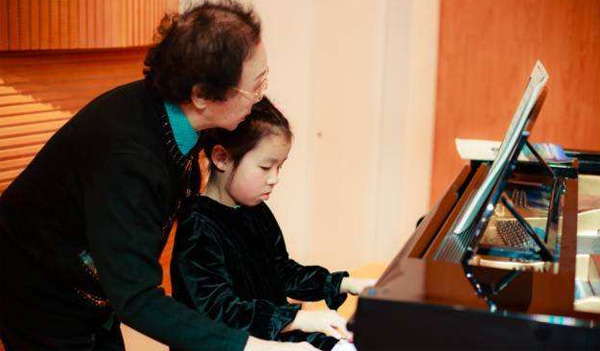 朱老师虽然都那么大的年龄了,但她授课时仍然是吐字清晰、发音准确、声音宏亮,语气和缓而亲切。在给我们上示范课时,她会耐心地听完每个学生的弹奏,然后先肯定表扬孩子的优点,再和蔼地帮助孩子逐一分析存在的问题,并几乎是对每个学生都要亲自进行熟练生动的范奏。