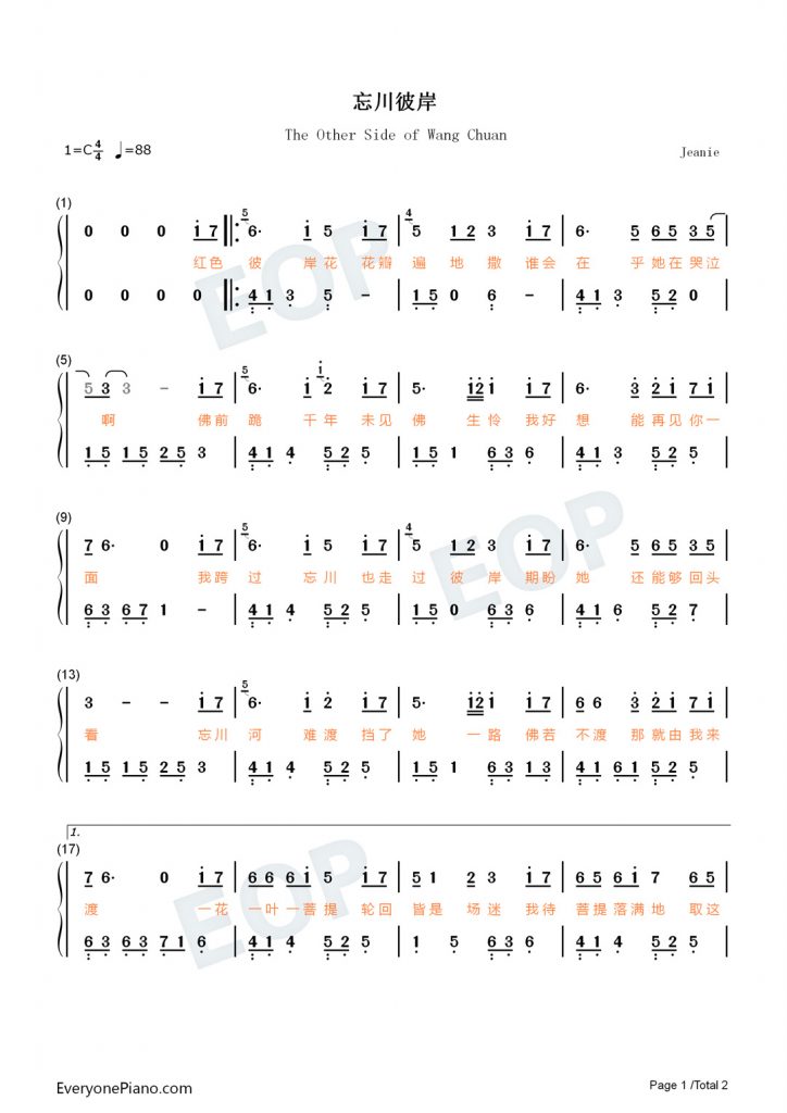 忘川彼岸 钢琴谱-红色彼岸花,花瓣遍地撒-抖音热歌