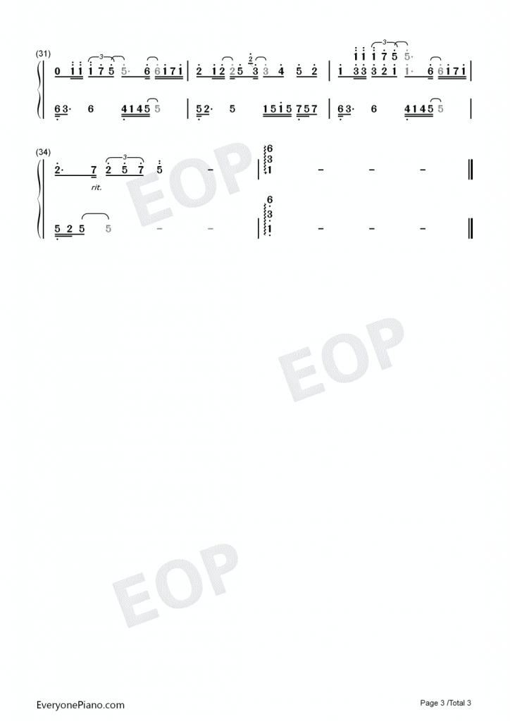 执迷不悟 钢琴数字简谱 – 抖音热歌