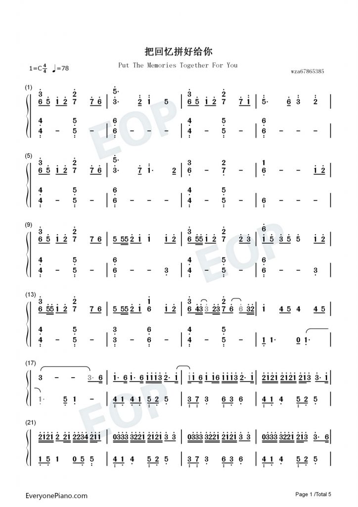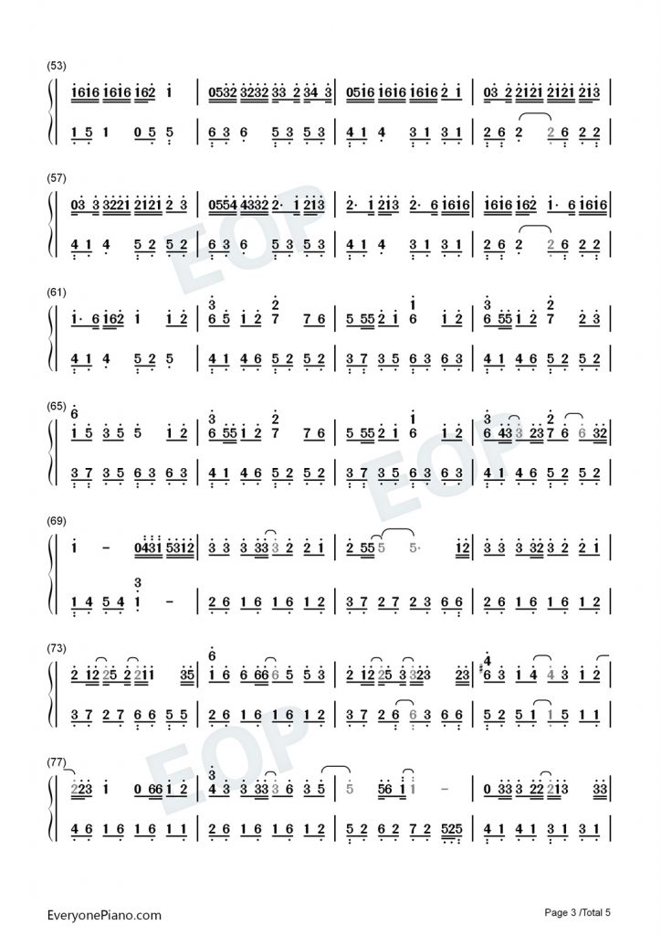 TA 钢琴数字简谱 简单版-抖音热歌-不是花火呀