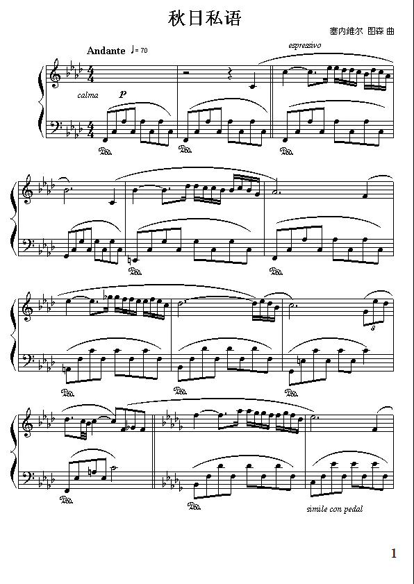 《秋日私语》理查德克莱德曼现场演奏版,附钢琴谱