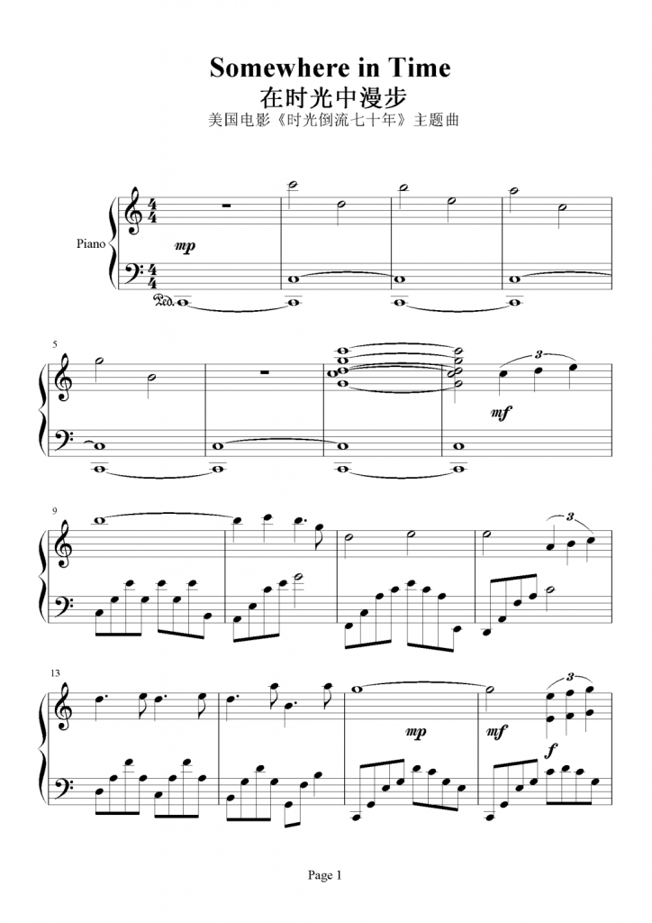 Somewhere in time 在时光中漫步 钢琴谱-电影《时光倒流70年》主题曲