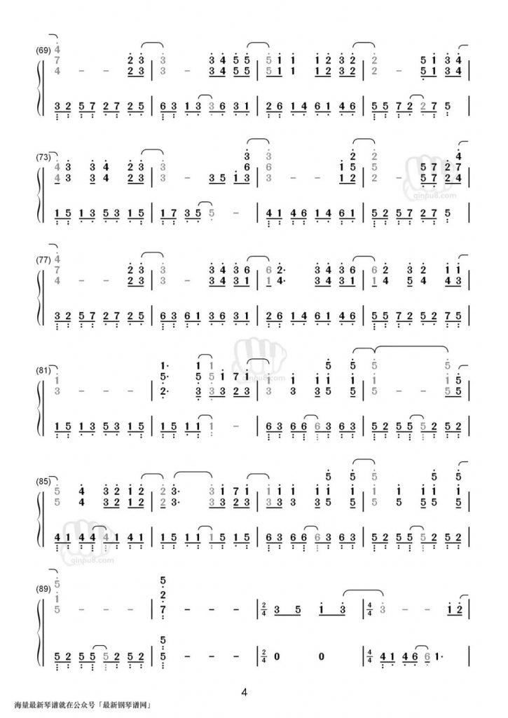 刘畊宏 彩虹天堂 钢琴双手数字简谱
