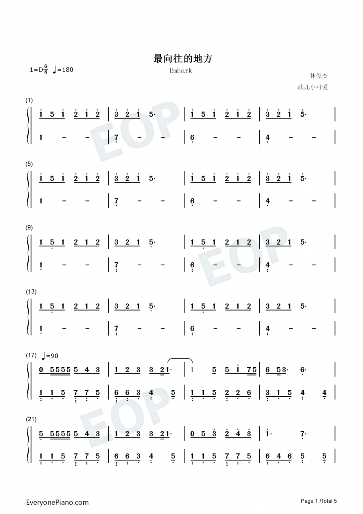 最向往的地方 钢琴谱-动画电影《心灵奇旅》中文主题曲-林俊杰