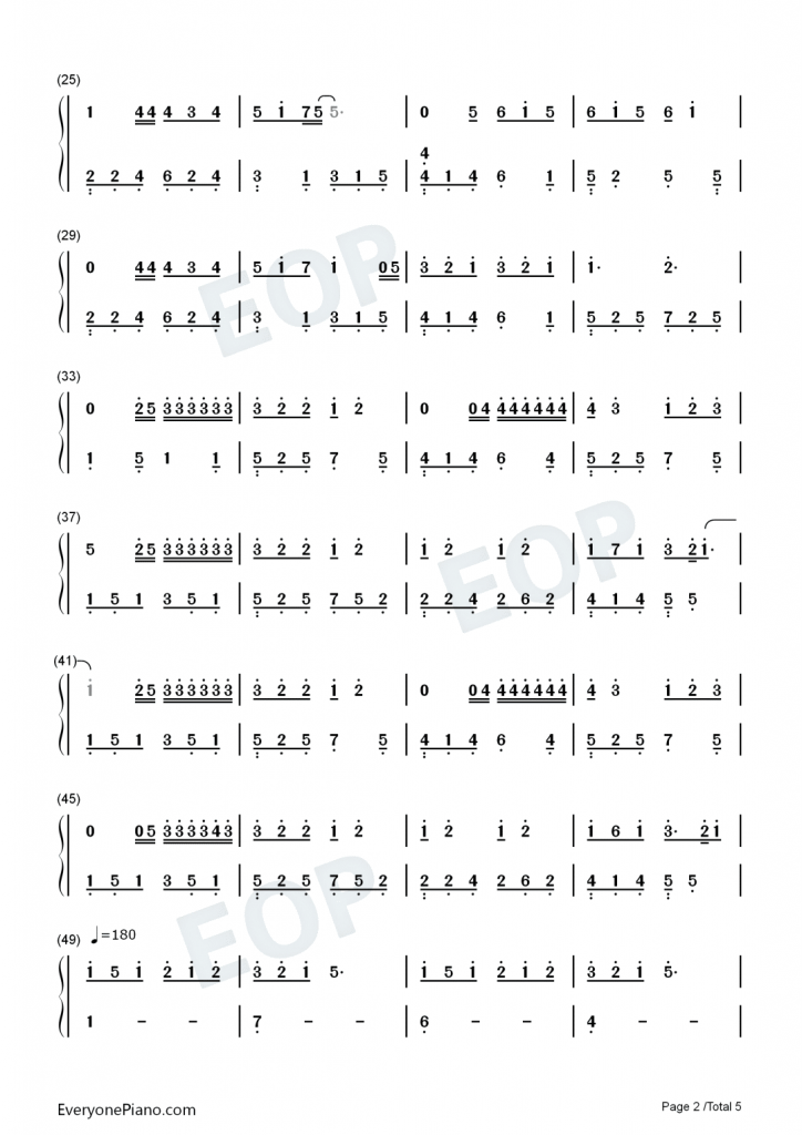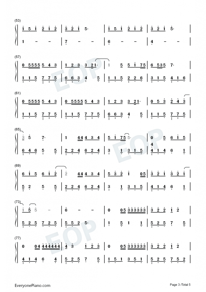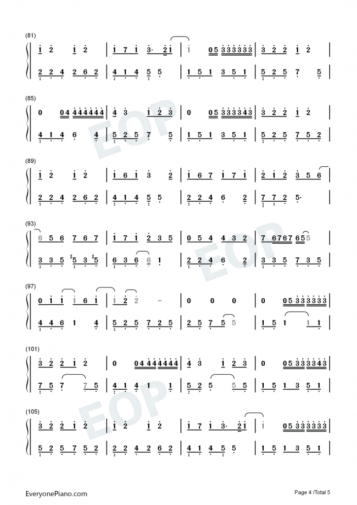 因为爱情 钢琴谱 – 电影《将爱情进行到底》主题曲-陈奕迅 、王菲