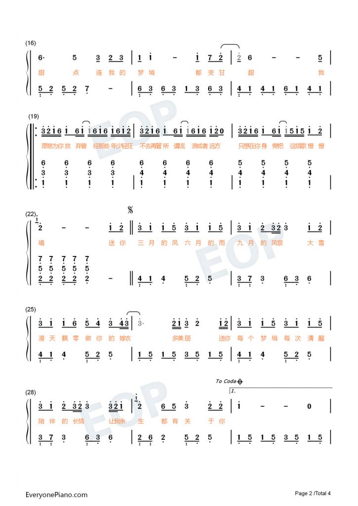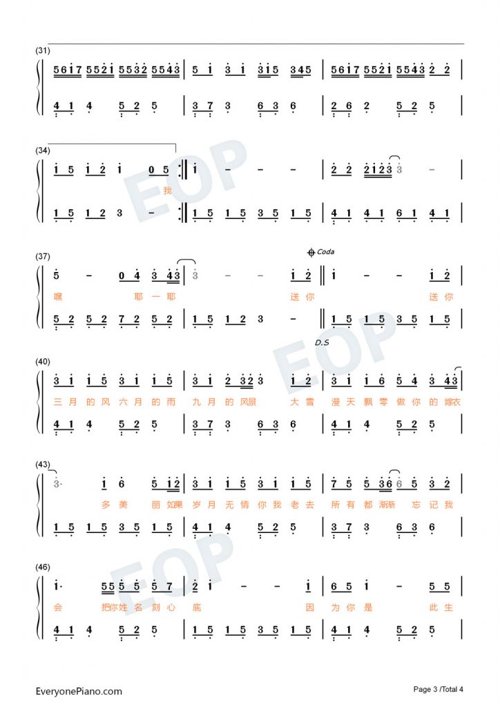 四季予你 钢琴谱-送你三月的风六月的雨九月的风景-抖音热歌