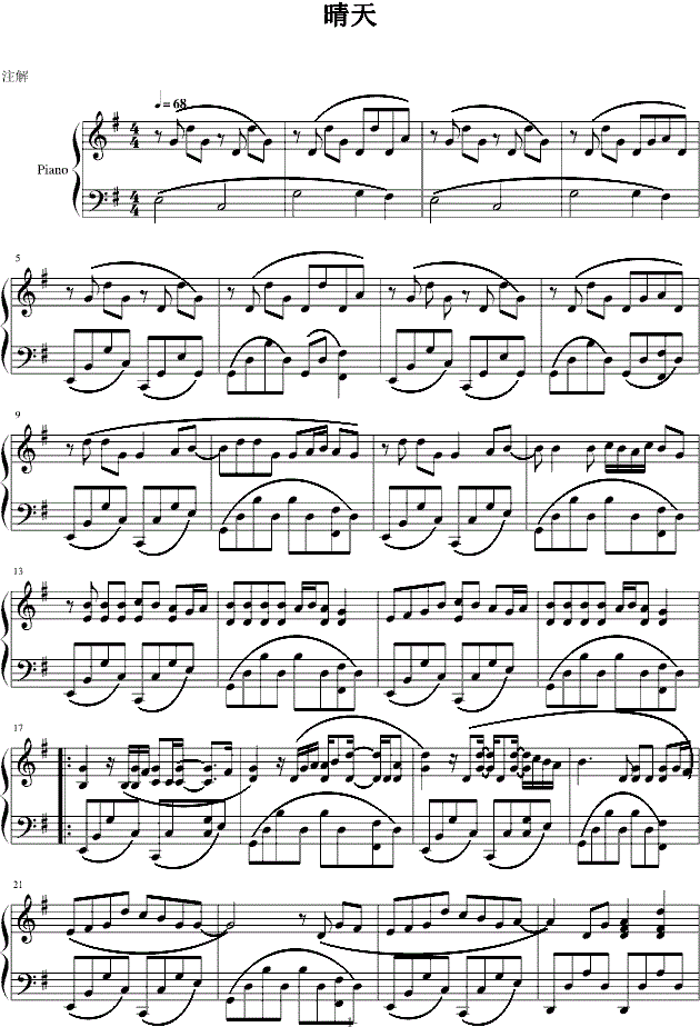 《晴天》 钢琴谱
