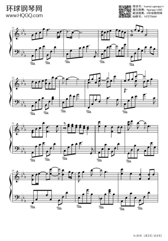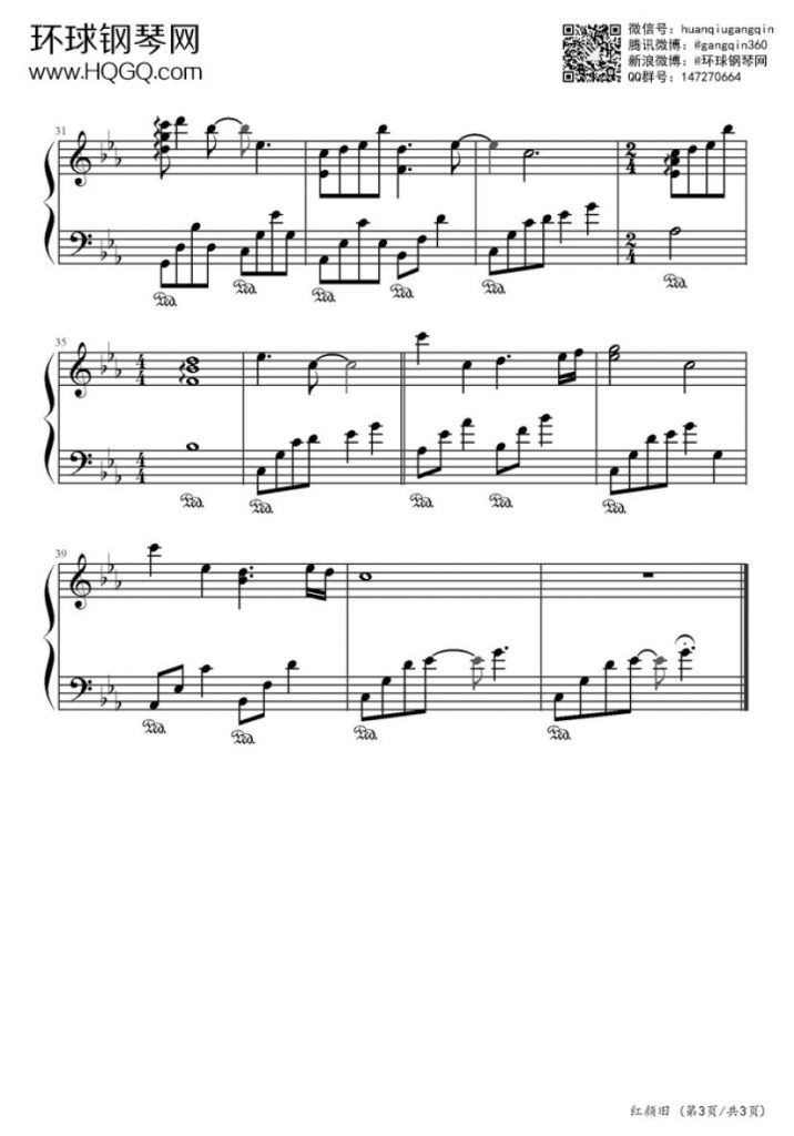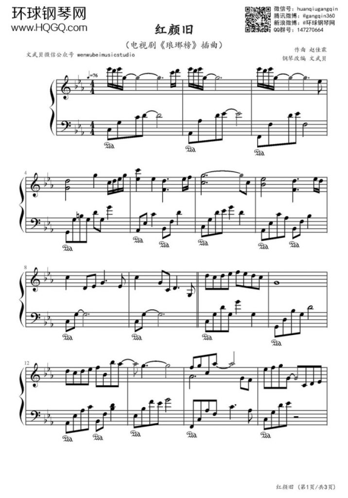 《红颜旧》文武贝钢琴版,附谱-古装传奇剧《琅琊榜》插曲