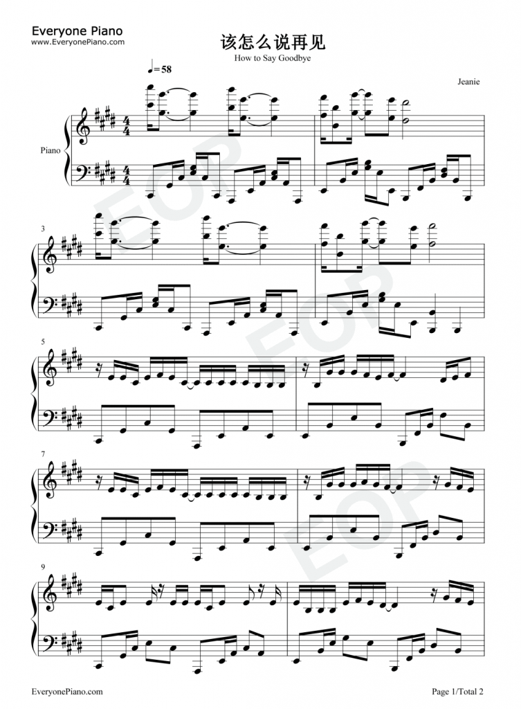 该怎么说再见 钢琴数字简谱-太过努力太过聪明太过算计太不容易-抖音热歌