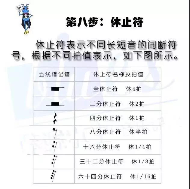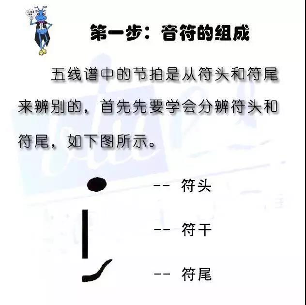 标签:五线谱 很多同学 ,说五线谱记忆很难,来看这里,收藏起来~ 学习吧!五线谱速成,只需要九步 第一步:音符的组成 第二步:看音符数拍数 第三步:附点音附增加拍数 第四步:辨识高低音谱 第五步:高音谱口诀 第六步:低音谱口诀 第七步:变音记号 第八步:休止符 第九步:延音线
