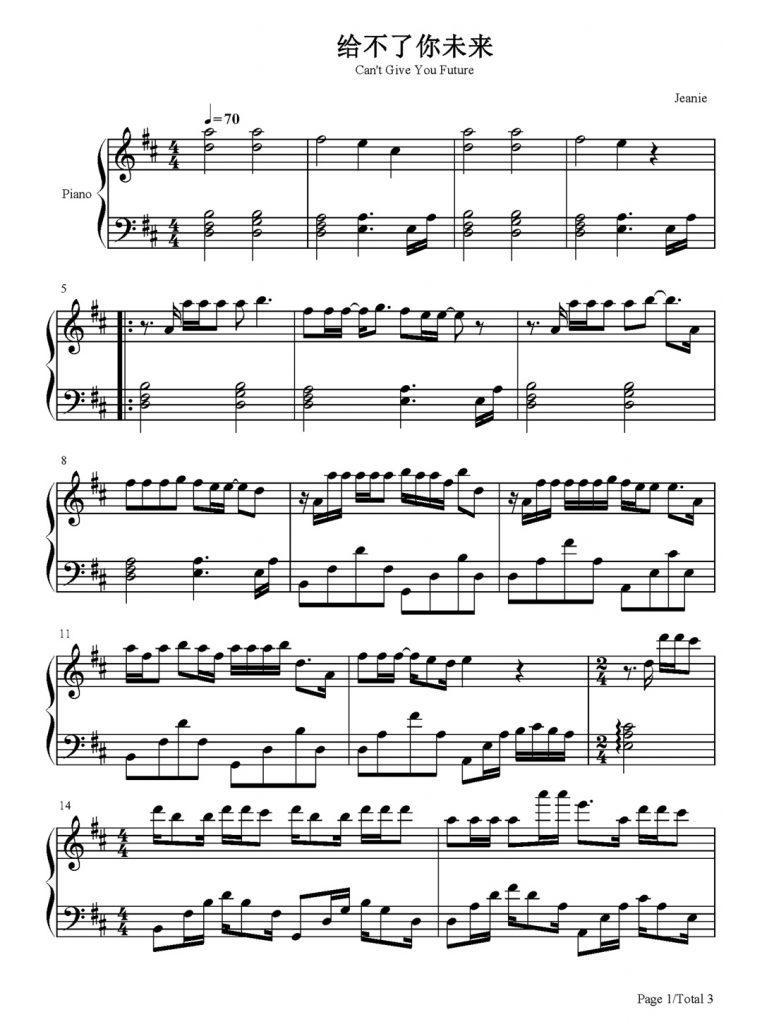 给不了你未来 钢琴谱-张家旺-抖音热歌