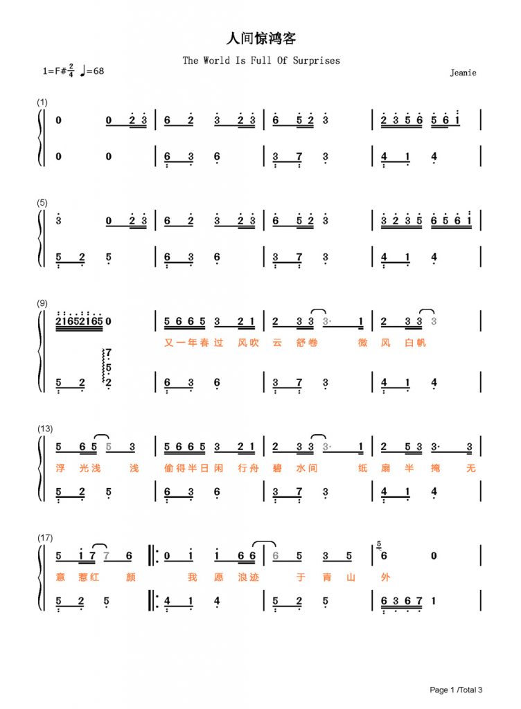 当前位置:首页 » 曲谱 » 流行曲谱 » 人间惊鸿客 钢琴数字简谱 – 简单版 -古风热曲 – 叶里