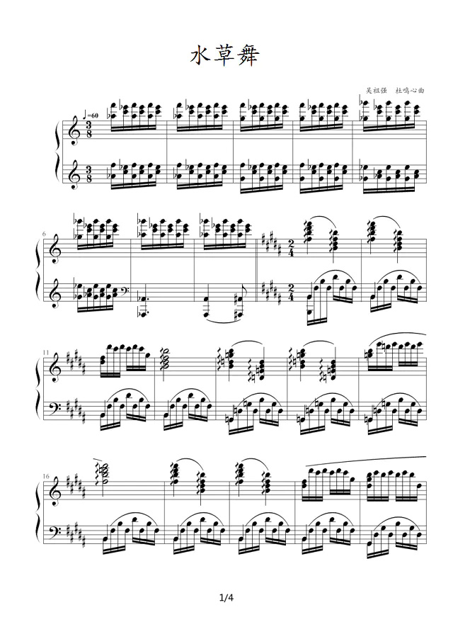钢琴组曲《水草舞》选自芭蕾舞剧《鱼美人》,由吴祖强,杜鸣心1959年创作。作品《水草舞》讲述了海底世界时的一段群舞,演奏柔缓舒展,生动地描绘了水草姑娘随波曼舞的场景。本文主要从踏板,触键、音乐情感的处理等方面来分析作品,希望为广大演奏者提供一定的参考。