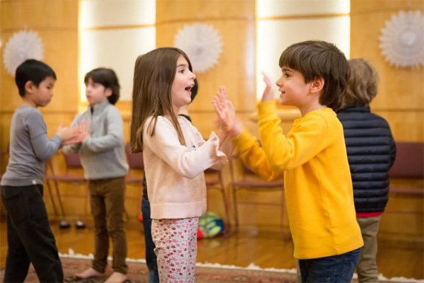 用一些看似简单的音乐游戏,比如:拍手、拍腿、信号音游戏、声音模仿、身体打击乐等,却能充分的让孩子们建立良好的乐感。