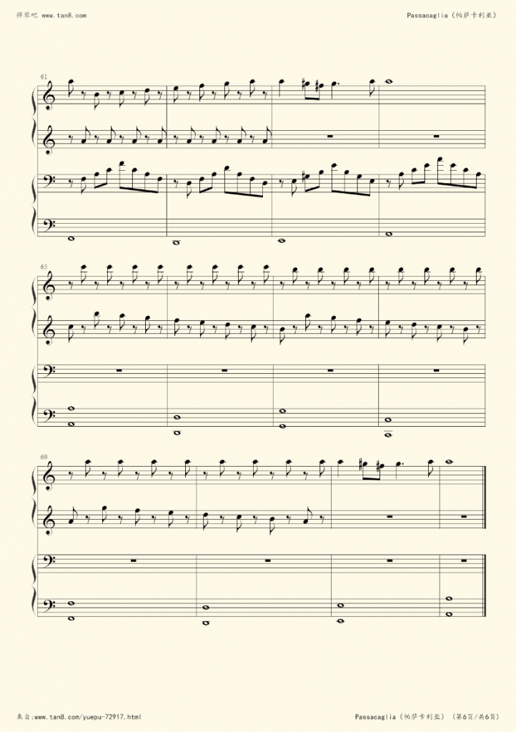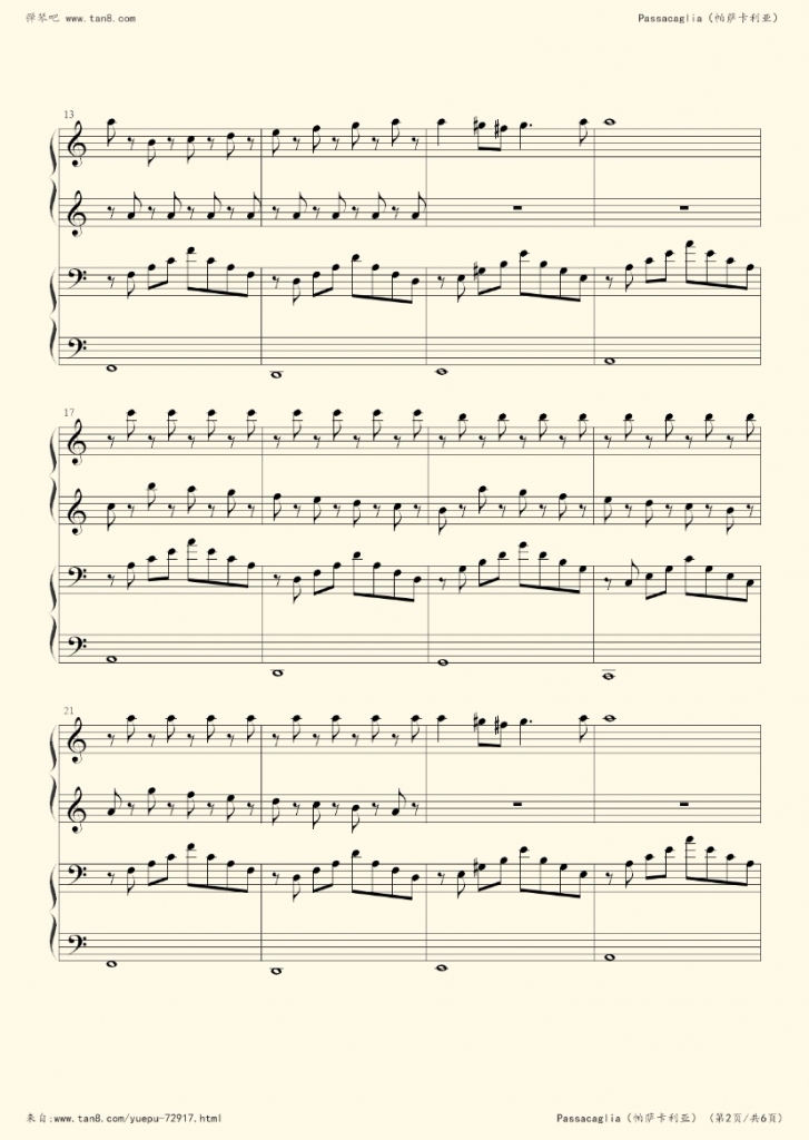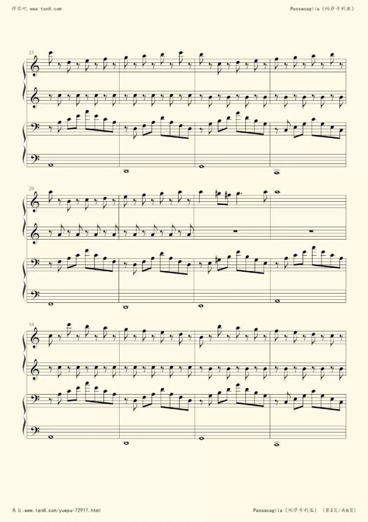 亨德尔《帕萨卡利亚》 四手联弹 钢琴谱