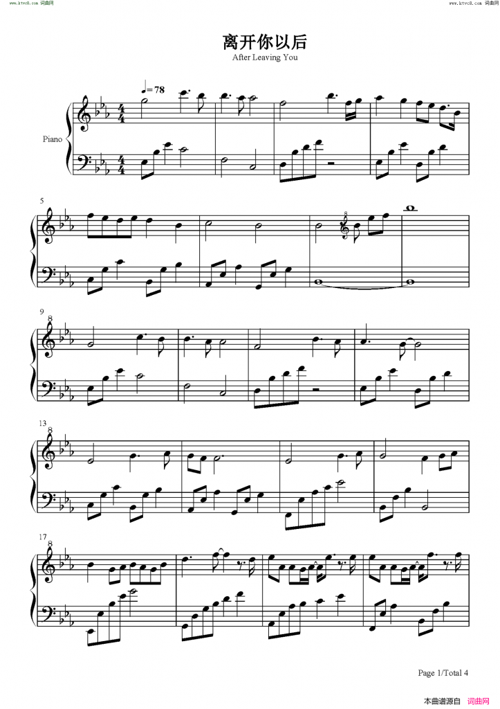 离开你以后 钢琴谱-电影《你的婚礼》插曲