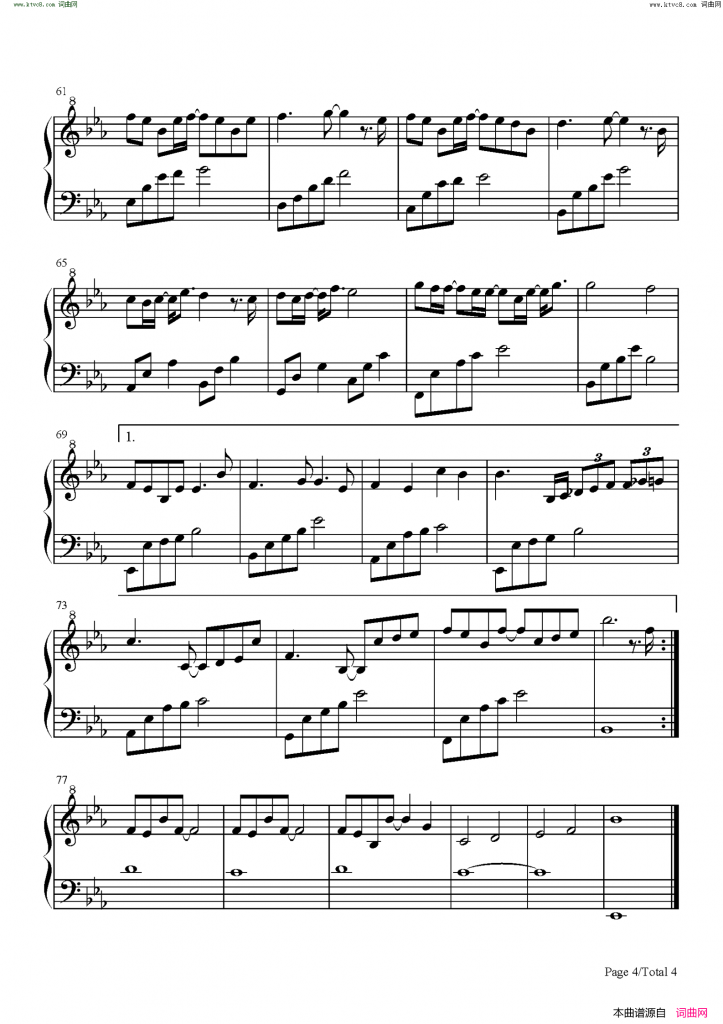 最长的旅途 钢琴谱 – 《无心法师》片尾曲