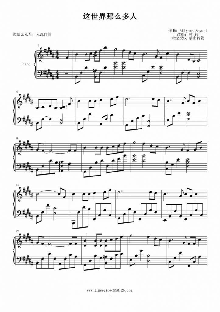 这世界那么多人 钢琴谱-电影《我要我们在一起》主题曲- 莫文蔚