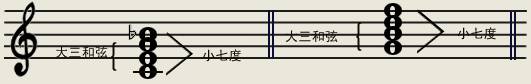 由”根音”、”三音”、”五音”构成大三和弦,”根音”到”七音”音程关系是小7度的和弦叫“大小七和弦。