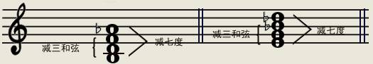 “根音”、“三音”、“五音”构成了减三和弦,从根音到七音是减七度的和弦叫“减七和弦”,也叫“减减七和弦”。
