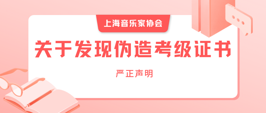 近期,上海音乐家协会考级委员会在市场上发现了一批伪造的上海音乐家协会考级证书,针对该情况,严正声明如下: