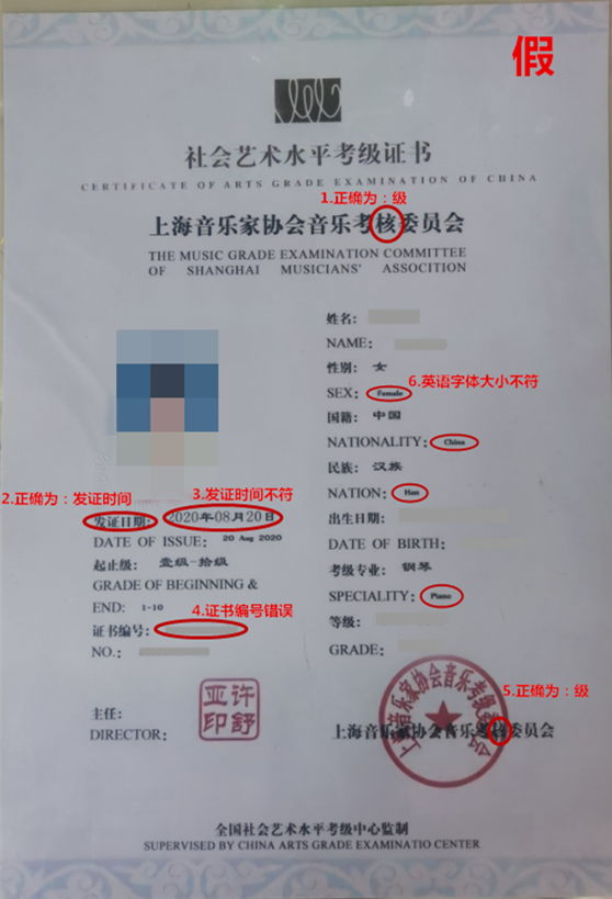 1,冒充上海音协考级委员会名义违法颁发伪造证书行为必须立即停止;