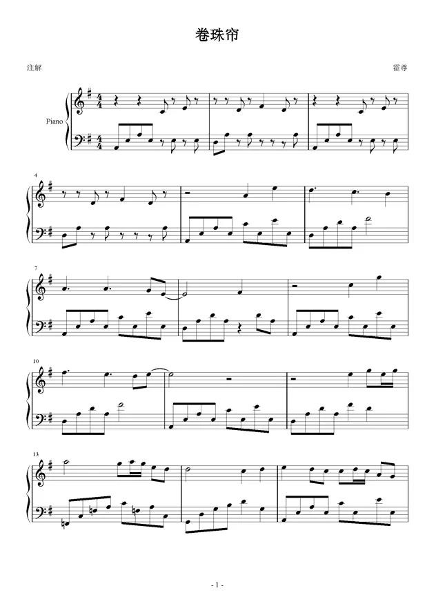 当前位置:首页 » 曲谱 » 流行曲谱 » 卷珠帘 钢琴谱-霍尊