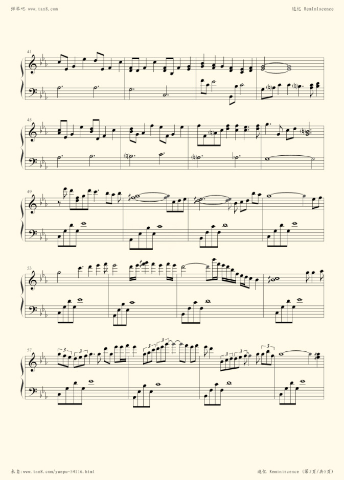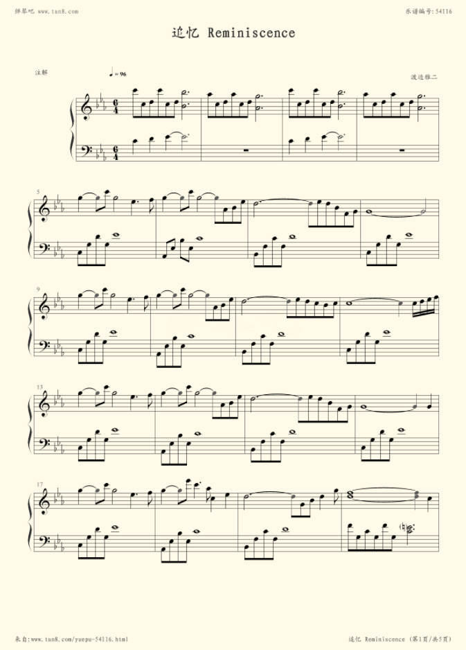 Reminiscence 追忆 钢琴谱 – 渡边雅二