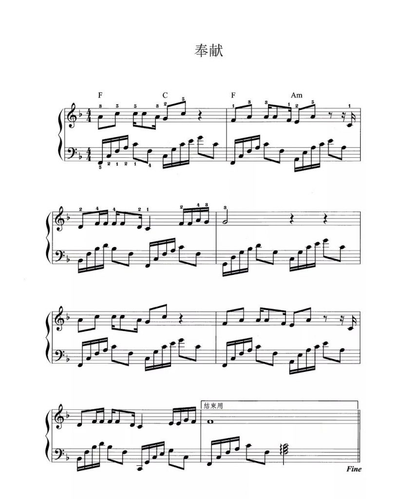 奉献 钢琴谱 -苏芮