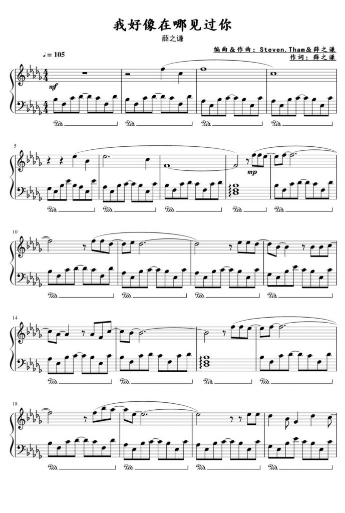 我好像在哪见过你 钢琴谱 – 动画电影《精灵王座》主题曲 – 薛之谦