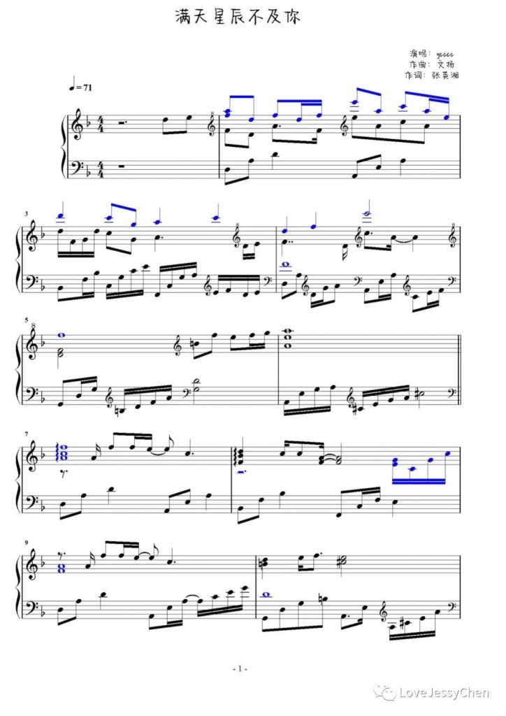 满天星辰不及你 钢琴五线谱 – 抖音热歌