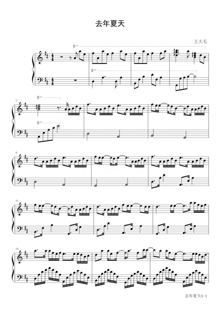 彩虹天堂 钢琴五线谱 – 刘畊宏