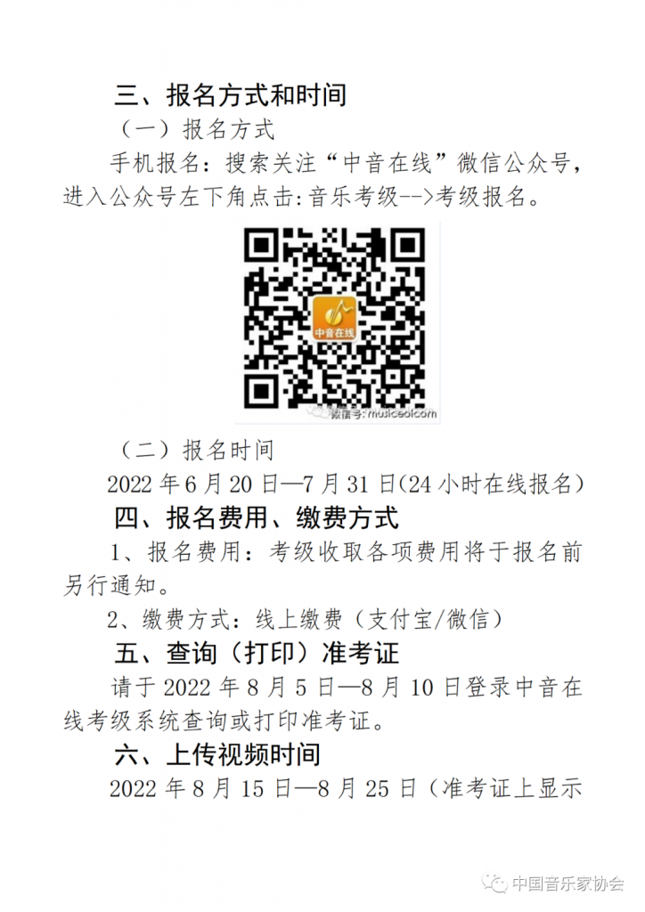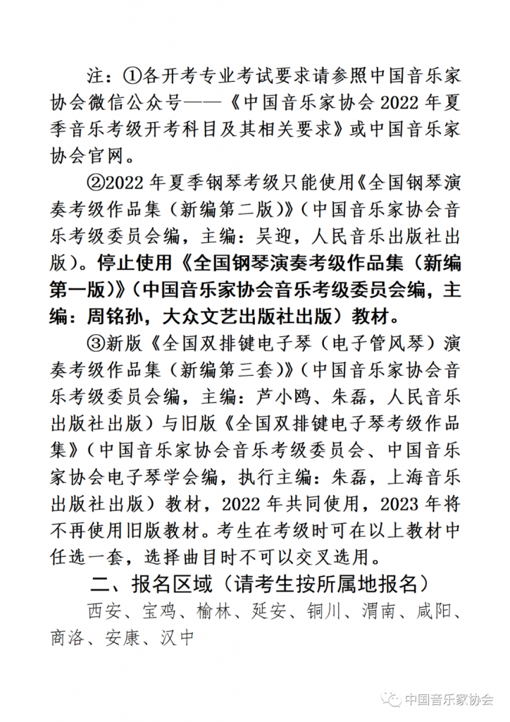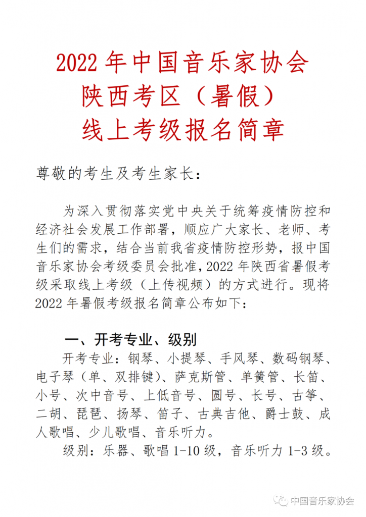 2022年中国音乐家协会陕西考区(暑假)线上考级报名简章