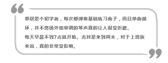 如今早晨还能偶尔听到琴声,但是不再至于被吵醒,周末时间也会弹,时间大概在上午10点或下午3点左右,这对于上班族来说,已经可以了。