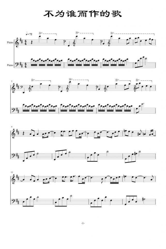 不为谁而作的歌 钢琴谱 – 林俊杰