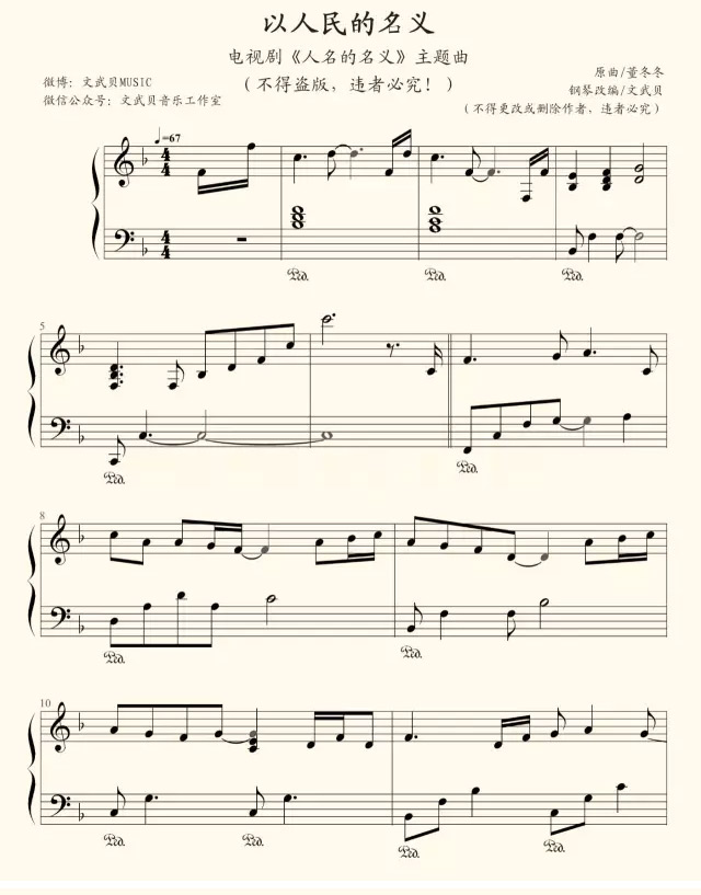 《人民的名义》主题曲钢琴版来啦~(附钢琴谱)