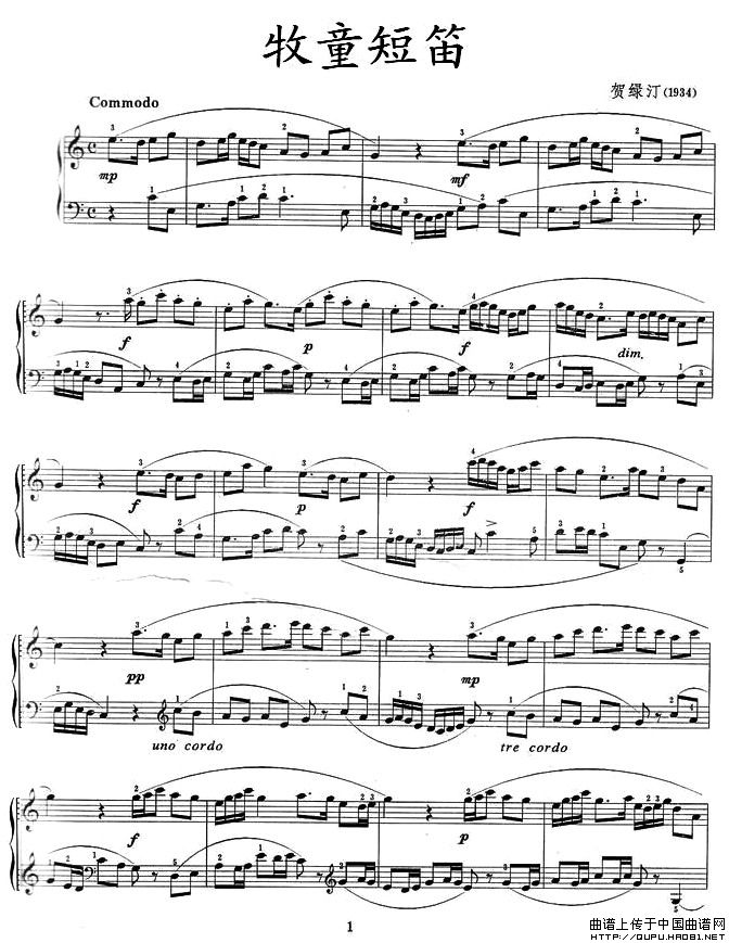 《牧童短笛》原名《牧童之笛》,是贺绿汀先生创作于1934年的一首钢琴曲。该曲是音乐界第一首具有鲜明、成熟的中国风格的钢琴曲,刻画了完全不同于西方风格的中国田园音画,曲将西方的复调写法和中国的民族风格相结合,将欧洲音乐理论与中国音乐传统相结合,呈现出独具一格的中国风格特征,为中国钢琴音乐作品翻开了新的一页,是我国近代钢琴音乐创作上一个具有创造性的范例。