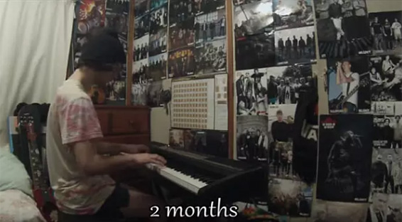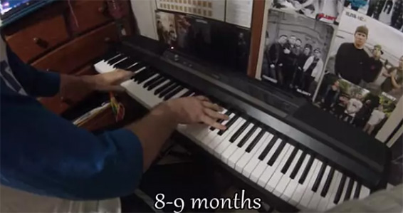 据英国《每日邮报》报道,近日,一名澳大利亚的小哥在油管上发布的一段自学钢琴的视频记录引来不少网友围观。在这段视频中,他记录了自己在18个月内自学电子钢琴的全过程,完美的阐释了“熟能生巧”四个字,全程燃爆。