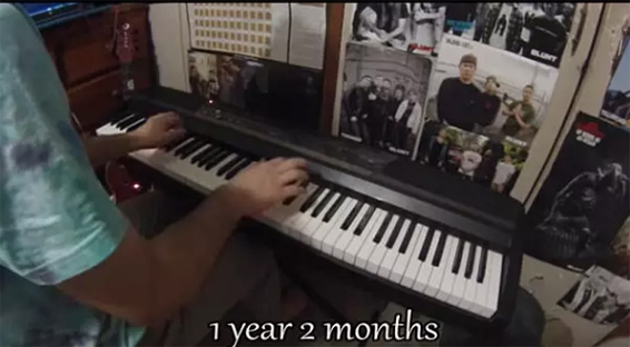 一年两个月后,他表示已经开始挑战自己,开始学习需要更多弹奏技巧的歌曲。