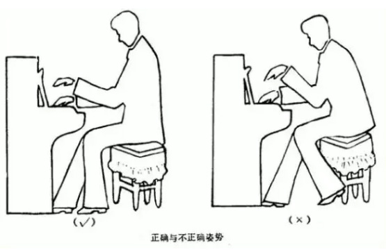 相反,假如手置键盘之上时,肘部明显低于键盘平面,说明坐位偏低了,应把琴凳适当调高。