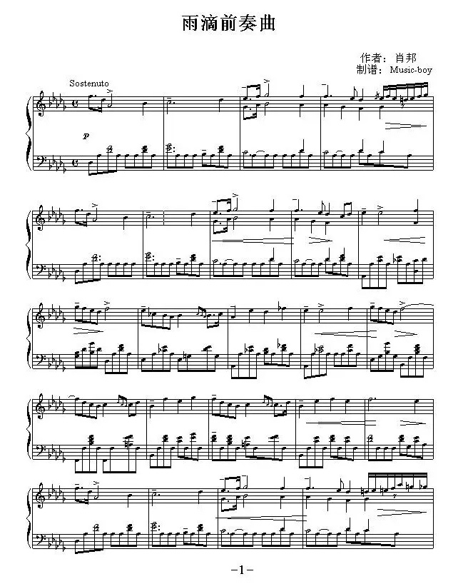 肖邦的《24首前奏曲作品28号》发表于1839年,其中的代表性作品:第十五首《降D大调前奏曲“雨滴”》,根据肖邦的爱人乔治·桑对该作品的理解,是连绵的雨点无情洒落在修道院瓦片上的画面给予肖邦灵感创作而成,乐曲自始至终出现的一个持续音降A就是在模仿雨滴的声音。