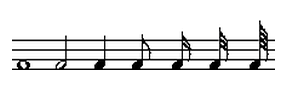 全音符、二分音符、四分音符、八分音符、十六分音符、三十二分音符、六十四分音符