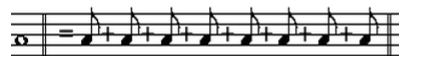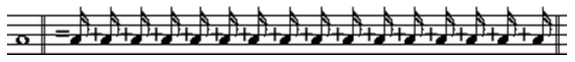 长着四个尾巴的黑色音符名叫“六十四分音符”。它是“三十二分音符”的一半。(它等于全音符1/64的时值)